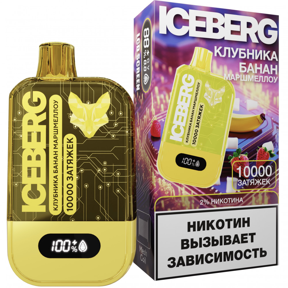 ICEBERG видыXXL 10000 ICEBERG вкусыКлубника банан маршмеллоу ICEBERG количество в блоке10 шт