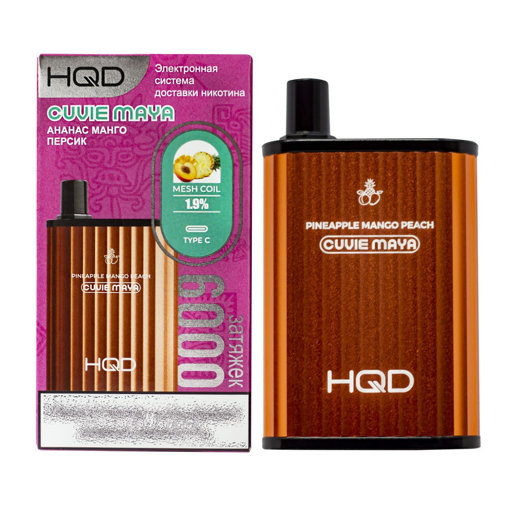 | HQD видыCuvie MAYA (Куви Мая) | HQD вкусыАнанас Манго Персик | HQD количество в блоке5 шт |